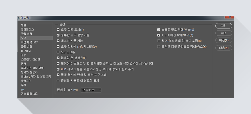 포토샵 확대 축소 단축키는 [ Z / alt ]라고 알고 계시죠? 작업효율을 위해 마우스 휠로 편하게 사용하세요!